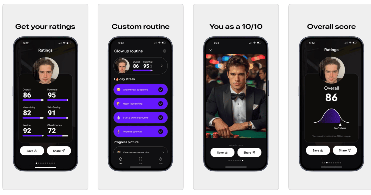 The app grew from Blake’s focus on the community of "looksmaxing", a male self-improvement culture, emphasizing focus on maximizing one's physical appearance through various methods.