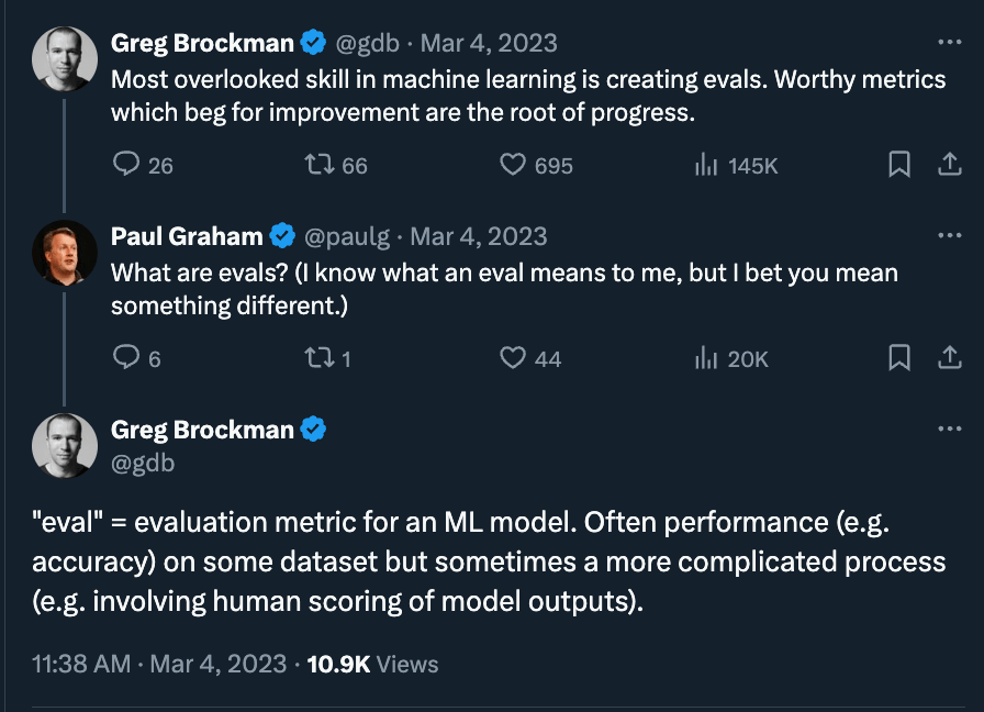 On what they learned from Greg Brockman’s Twitter: “Evaluation is all you need.”