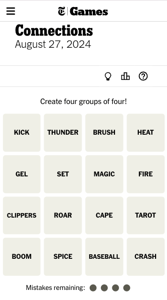 This is New York Times Connections, a simple game of hypothesis testing and inference.