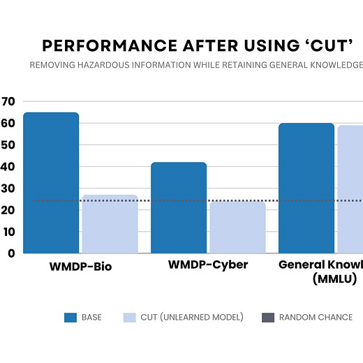 No one could be against this right? Hazardous knowledge unlearned without harming other capabilities! The pathway from here is fairly obvious: