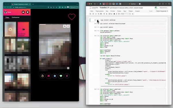 When finding a girl on Tinder, he used a web scraper to get the images so that the AI could swipe right based on photos:
