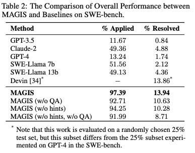 MAGIS successfully resolved 13.94% of issues, an 8-fold improvement over applying GPT-4 directly, demonstrating the effectiveness of the multi-agent approach