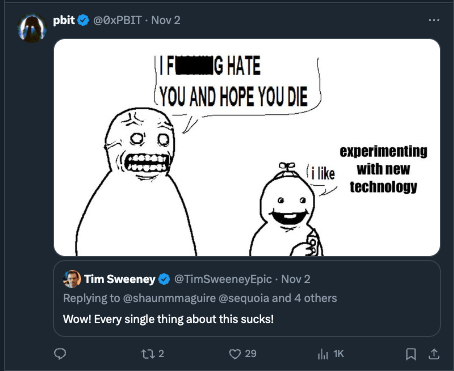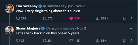 Tim Sweeney, creator of the Unreal Engine and Fornite, did not like it