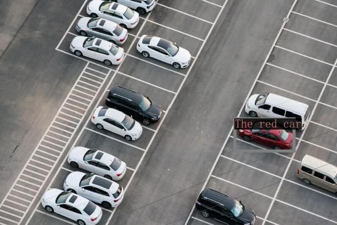 It can annotate and respond with images. In response to an input image and the prompt “Locate the red car”