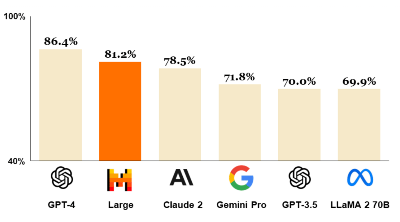 Mistral originally focused on releasing smaller open-source models, scaling them up over the last 6 months until now, when it’s in striking distance of GPT-4.
