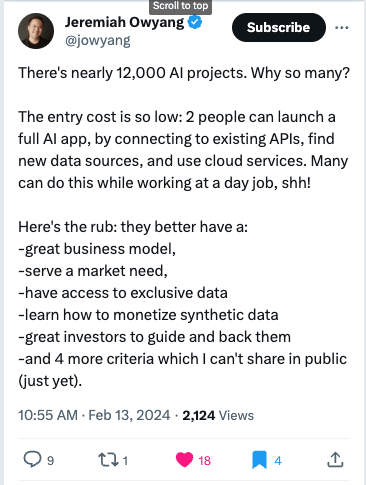 Lots of AI projects and how to differentiate them: Jeremiah Owyang has some good advice: