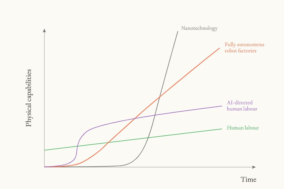 This post was inspired by this LessWrong piece about how an industrial explosion (a rapid increase in manufacturing capacity) would look like. TLDR the maximum speed would be a one time 10x increase in physical production from AI’s perfecting existing companies, an acceleration from robot autonomous factories doubling every 6 years, and the rate itself doubling (ie to 3 years) every 6-30 years. Finally an exponential almost biological growth from nanotechnology.
