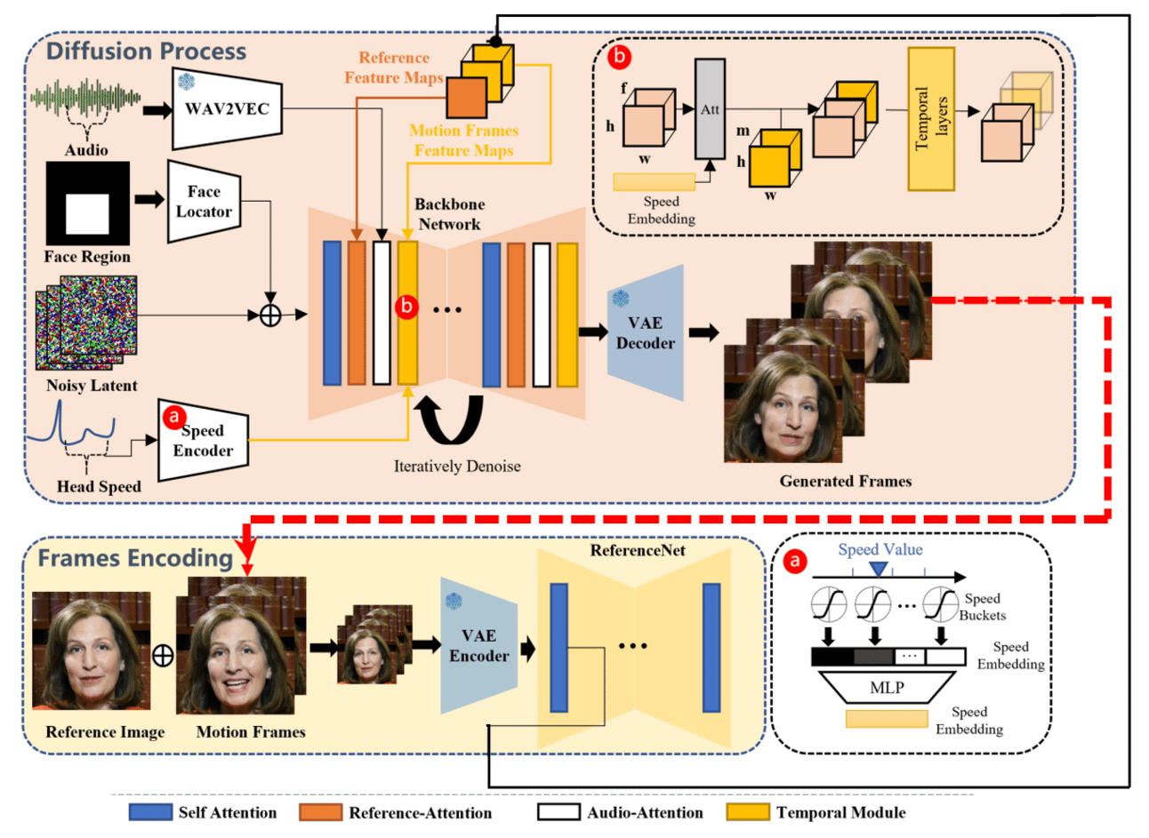 used an image diffusion model where the next frame is generated based on the last frame, and the audio signal